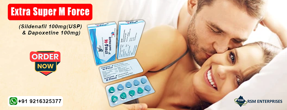 Sensual dysfunction is a common problem among males. This issue interferes with the normal sensual response cycle. It does not allow a man to gain sensual satisfaction from the sensual contact. A great number of men experience sensual dysfunction. This illness can occur at any age. It is more common in men between the ages of 40 and 75. The most common type of sensual dysfunction in men includes erectile disorder (or impotence) as well as early ejaculation (or PE). Buy Extra Super M Force online from rsmenterprises that is an oral medication designed to deal with the problems of erectile disorder (or impotence) as well as early ejaculation (or PE). It comprises Sildenafil citrate 100 mg and Dapoxetine 60 mg.