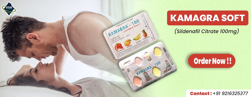 For maximum people sensual interaction is very important. It is a way you connect with your companion. A lot of men are not able to get or even maintain an erection during sensual communication with the lady. This sensual condition is termed erectile disorder or Impotence in men. It is a common sensual problem among the males. Very few men report this illness to their doctors. Men between the ages of 40 to 70 tend to suffer from it more. Erectile disorder can occur over a short or long period Kamagra Soft Chewable Pills from rsmenterprises is an oral medication designed to manage the problem of erectile disorder in males. It comprises Sildenafil citrate 100 mg.