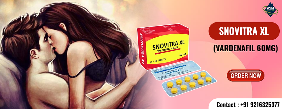 Snovitra XL is a superb medication for the treatment of erectile disorder or ED in males. It comprises Vardenafil 60mg. The medication functions by raising the flow of blood to the male organ. This helps men to gain firm erections during the sensual contact with the lady. The medication is easily available at a very low cost online.
