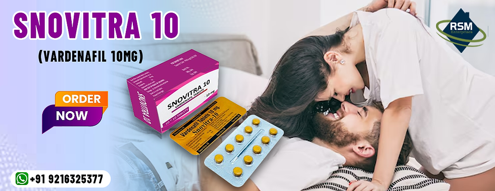 Erectile disorder, or ED, is a common problem among men. It is a difficult problem that men don't like to discuss with their partner or even their doctor. This illness causes men to be unable to gain or even maintain an erection during sensual communication with the lady. This illness is also known as ED, or impotence. This illness might even lead to sensual performance issues in males. It is a common and manageable illness in males. This illness can be handled with the help of a doctor. Buy Snovitra 10 mg best price from rsmenterprises that is an excellent medication to deal with the problem of erection failure, or ED. It comprises Vardenafil 10 mg.