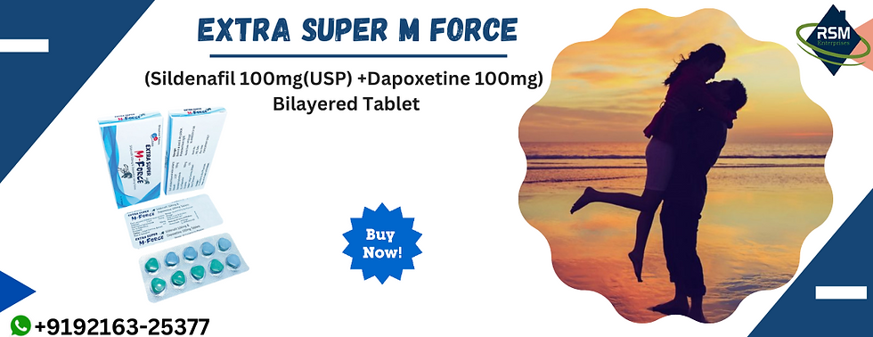 Extra Super M Force from rsmenterprises is a drawn-out solution for erectile dysfunction and premature ejaculation in men. This medicine contains Sildenafil Citrate 100mg and Dapoxetine 100mg as a main component. Sildenafil citrate is a part that improves the quality of an erection and oversees ED. At the same time, Dapoxetine postpones the peaking and helps men return to their fearlessness. This medicine can effectively fix the capacity of men to achieve an erection. This tablet made a few men have a satisfying erotic life.