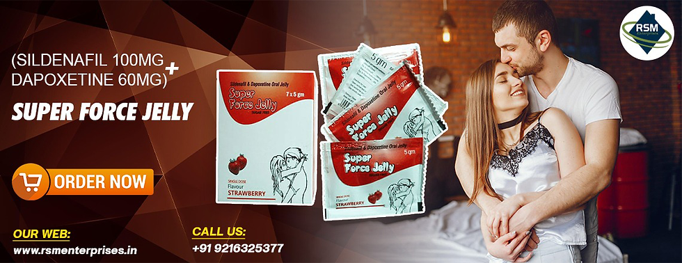 Super Force Jelly is a medication primarily used to treat men's common sensual health issues: erectile dysfunction (ED) and premature ejaculation (PE). It combines two active ingredients, Sildenafil Citrate 100mg and Dapoxetine 60mg, in a convenient jelly form.
