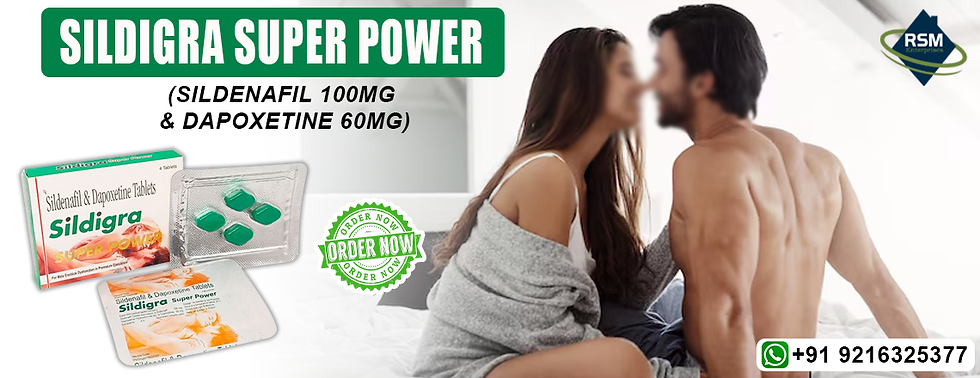 Sildigra Super Power is a useful medication in the management of erectile disorder (or impotence) as well as early ejaculation (PE). The medication comprises Dapoxetine 60 mg and Sildenafil citrate 100 mg. Men are able to gain firm and stable erections during the sensual interaction with the lady.