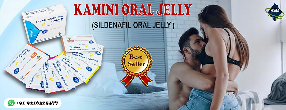 Sildenafil Oral Jelly (Kamini Oral Jelly) is a protected and compelling medication helpful in the treatment of erectile dysfunction or male impotence. It has a primary fixation of Sildenafil in oral jelly form. The oral jelly helps energize the regular sensual excitement in the male body and savours their existence to a full extent. ED is a condition where a man feels too frail to hold an erection for a more extended time. The condition happens because of a hindered or low bloodstream in the penile area, leading to the veins' contraction. It could likewise connect with the fundamental medical issue of an individual.