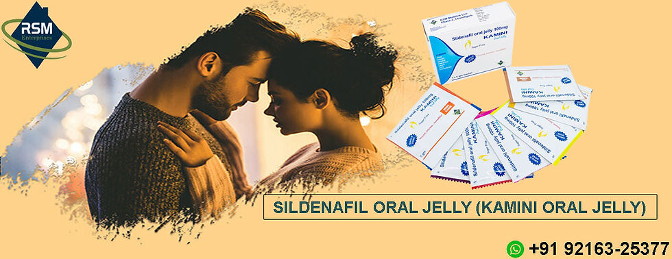 If your partner experiences issues having or keeping an erection consistently, he could have an erectile problem. ED can influence his satisfaction, feeling of anxiety, self-assurance, and relationship — yet it doesn't need to. Erectile disorder (ED), or feebleness, implies that you can't get or keep a proper erection. This sickness is frequently because of decreased blood stream to the male organ. Even though it can feel humiliating to connect for help, ED may be because of an ailment and can, in some cases, be the primary indication of a more serious basic difficulty, so it's vital to get looked at. The Sildenafil Oral Jelly (Kamini Oral Jelly) offered by RSM Enterprises is utilized for erectile dysfunction cure. More effectively gulped than tablets, and in this way, this Oral Jelly is reasonable for older individuals and for individuals who experience issues in gulping. This jelly is chemically made out of sildenafil citrate, a PDE5 inhibitor that achieves an erection. It is completed by relieving smooth muscle and boosting veins in the private area. Sildenafil Oral Jelly contains the dynamic fixing Sildenafil Citrate 100.