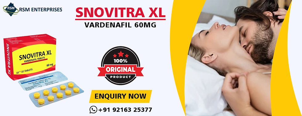 Buy Snovitra XL cheap price that is a flawless medication used in the management of erectile disorder or ED in males. It comprises Vardenafil 60 mg. This medication functions to raise the stream of blood to the male organ. This helps men to gain hard erections during the lovemaking activity with the lady.