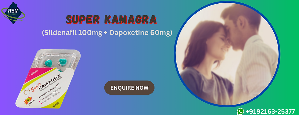 Super Kamagra is a combination medication that contains two active ingredients: Sildenafil Citrate 100mg and Dapoxetine 60mg. Sildenafil 100mg is the active ingredient in Viagra, used to treat ED, while Dapoxetine 60mg is used to treat PE. Super Kamagra works by increasing blood flow to the genital part, helping to achieve and maintain an erection, and delaying ejaculation during sensual intercourse.