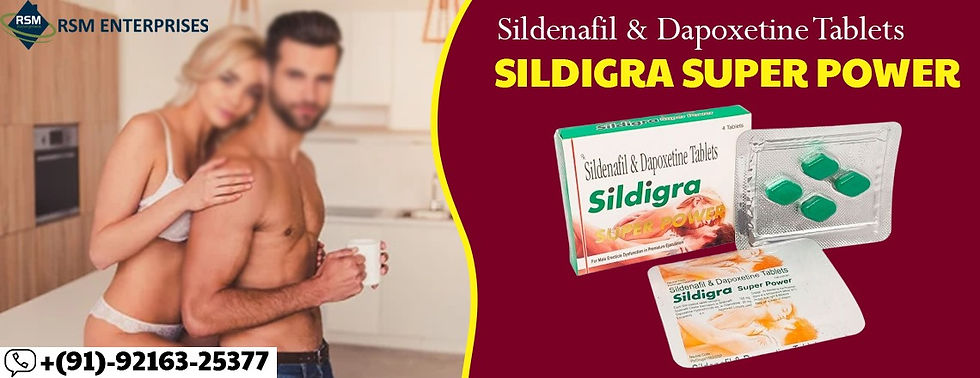 Erectile disorder (ED) and early ejaculation (PE) are a type of sensual condition that has an influence on men all over the world. This sensual illness does not allow men to be able to gain and even preserve an erection during the sensual interaction with the lady. This male sensual dysfunction inhibits a man from gaining adequate sensual performance. This sensual challenge is often overlooked. Sildigra Super Power best price from rsmenterprises is an oral medication for the treatment of Erectile disorder (ED) and early ejaculation (PE). It comprises Sildenafil 100mg and dapoxetine 60mg.